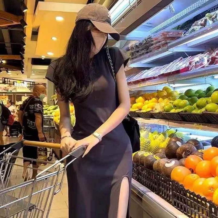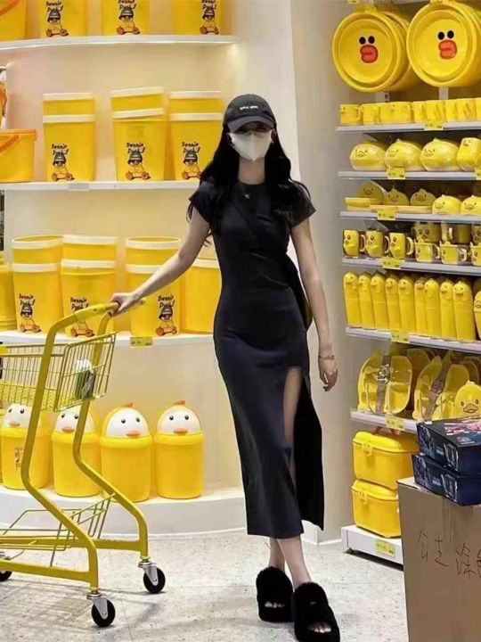 ☕️休闲开叉短袖T恤连衣裙女夏修身显瘦裙子御姐轻熟...