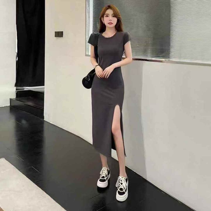 ☕️休闲开叉短袖T恤连衣裙女夏修身显瘦裙子御姐轻熟风辣妹气质长裙200件全清6.8元,分货7.8元,码数S到XXL,高弹力单款灰色,独立包装[庆祝][庆祝][庆祝]