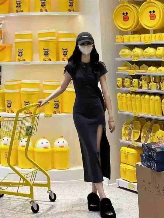 ☕️休闲开叉短袖T恤连衣裙女夏修身显瘦裙子御姐轻熟...