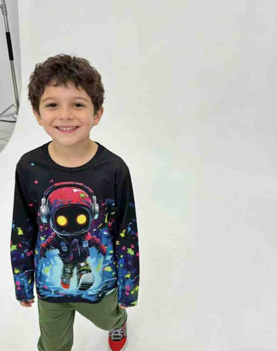 跨境外贸童壮印花长袖男女款T恤,大版宽松型后领包边 ...
