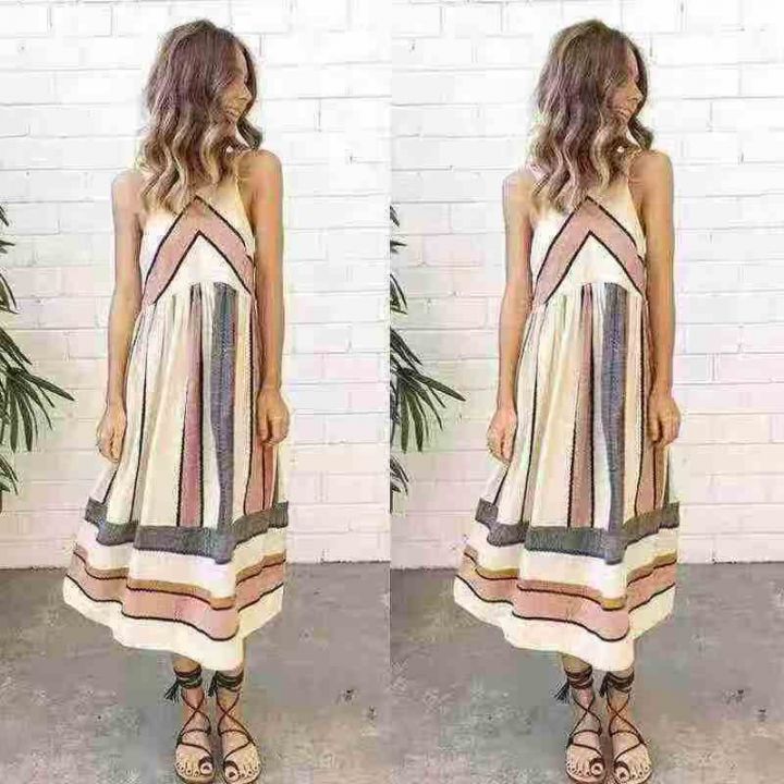 8.8元秒杀[發][發] 时尚印花沙滩休闲百搭中长裙无袖连衣裙,独立包装,码数s-xl,数量160件。