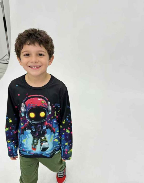 跨境外贸童壮印花长袖男女款T恤,大版宽松型后领包边 独立包装 码数120-170,数量9800件 全清2.9 分货加0.5