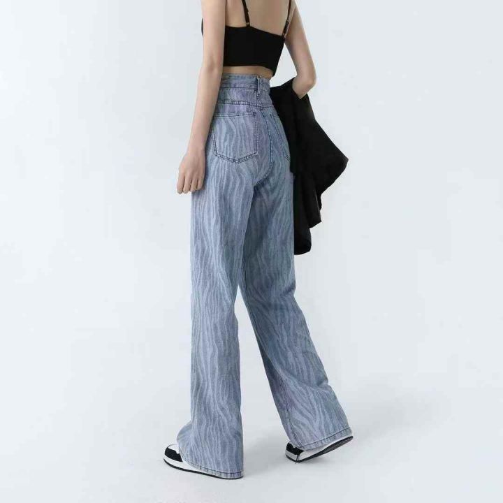 茵曼秋季高腰波浪纹阔腿牛仔裤日常通勤风宽松显瘦显高垂坠长裤,独立包装,580件左右,全清11.8块分货加一