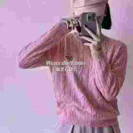 刺绣圆领套头毛衣女长袖秋冬保暖打底小颗粒绒针织衫,独立包装,均码,290...