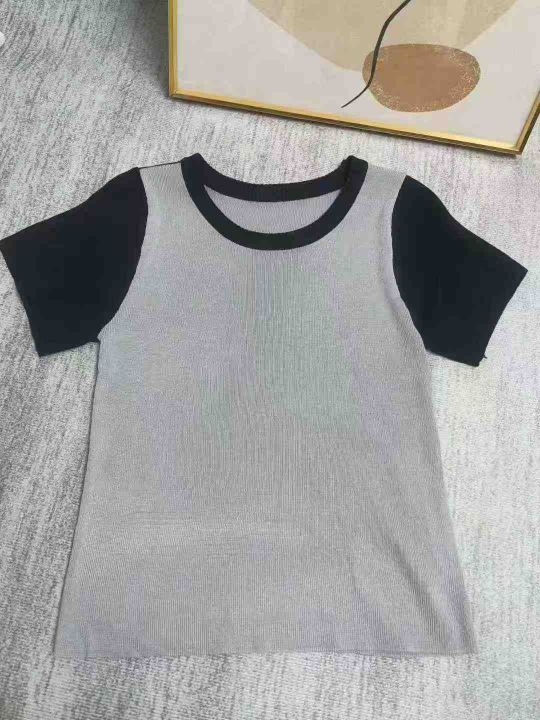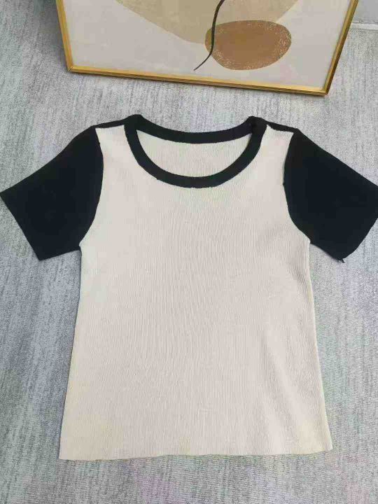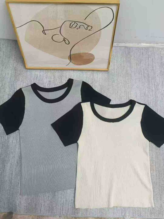 5.9全清,800件 分货+1,短袖正肩白色插肩撞色t恤 辣妹修身显瘦拼接圆领百搭针织毛衣 整款2色 品质好 独立包装。