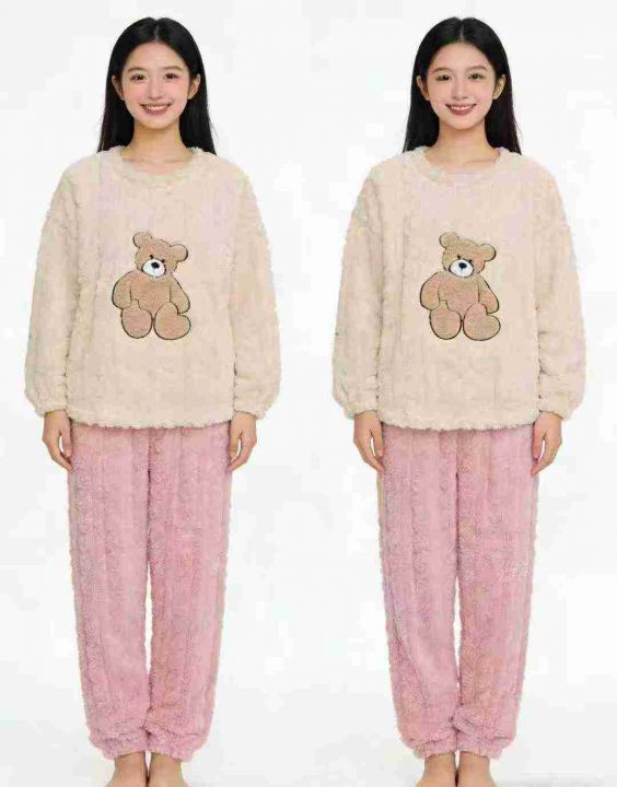 天猫仓回收550套秋冬热卖珊瑚绒小熊家居服套装,码数S-XL。宽松大版型,厚实保暖,有独立包装,超低价应季好货抢购!拼手速款。 货号:24862
