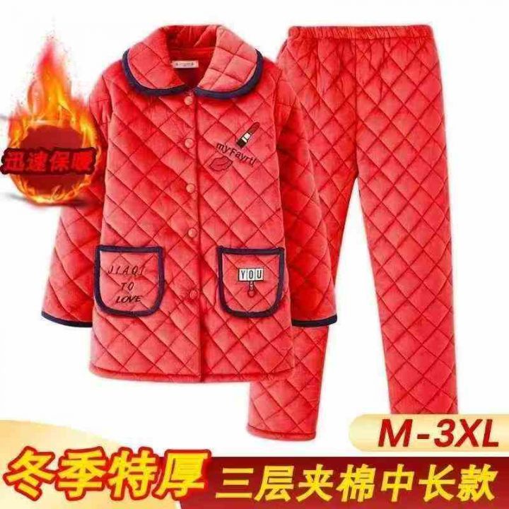 睡衣女冬季三层加厚夹棉珊瑚绒睡衣加绒法兰绒保暖棉袄家居服套装,数量28套,码数M-2XL,独立包装,货品干净厚实。