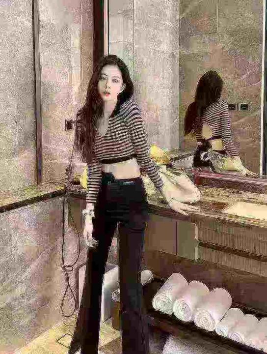 露脐上衣女高腰紧身设计感辣妹夏纯棉短款t恤甜辣妹正肩体恤上衣,韩标,独...
