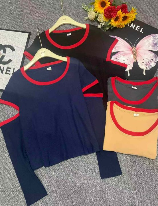 春秋网红新款撞色拼接漏肩韩系长袖T桖,独立包装,码数1-6码(相当于S--3XL码) 700件左右,全清4.8元超低价秒杀!分货加一!