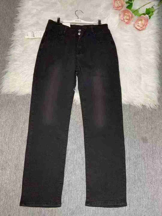 黑色高腰直筒牛仔裤女大码胖mm梨形身材宽松显瘦阔腿裤子600件,独立包装带...