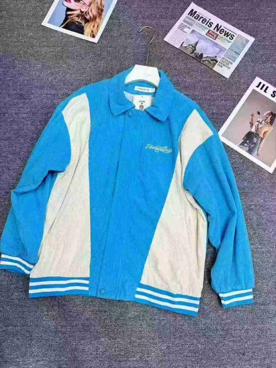 灯芯绒外套男春秋季美式vintage潮牌复古宽松拼接撞色翻领夹克衫,独立包装...