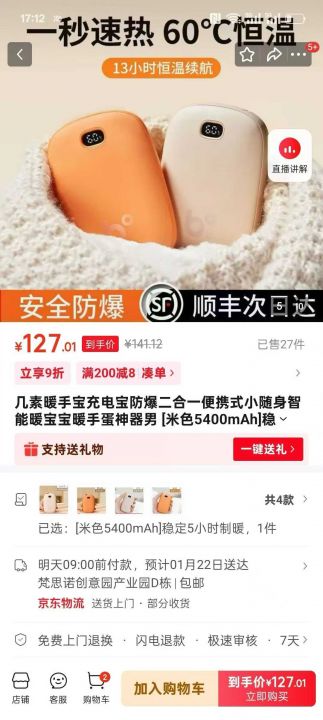 X 几素品牌 智能数显暖手宝 双面恒温 三档控温 带充电宝功能 电池容量5400...