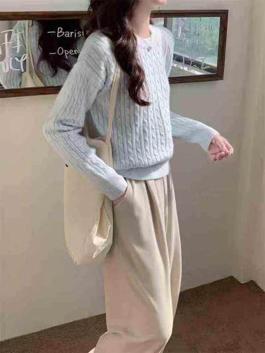 76件网红款麻花套头毛衣女内搭秋冬高级感修身圆领打底...
