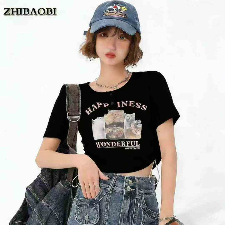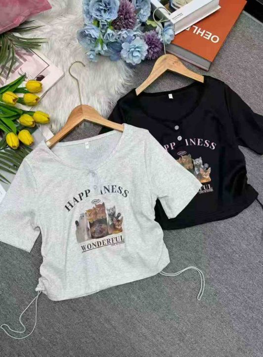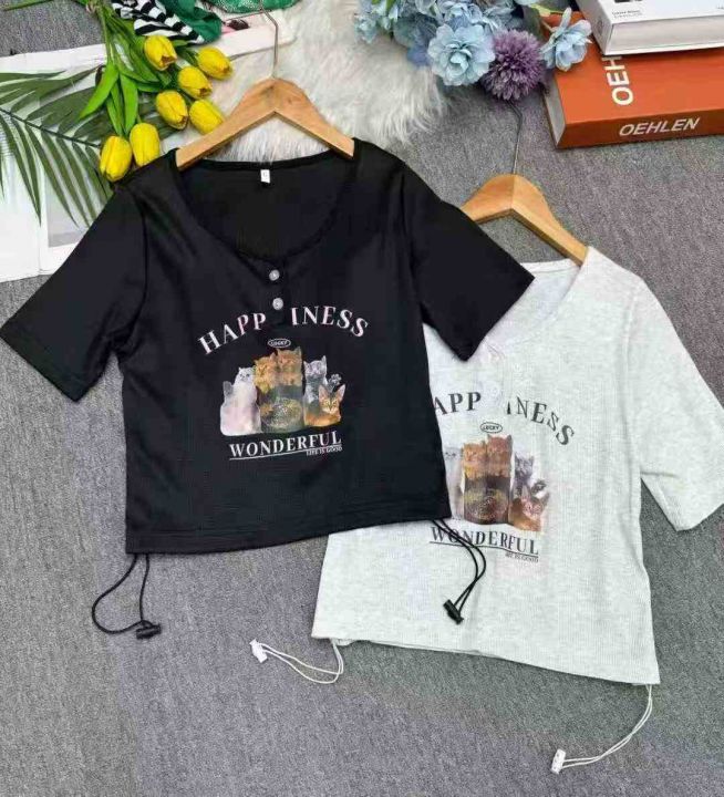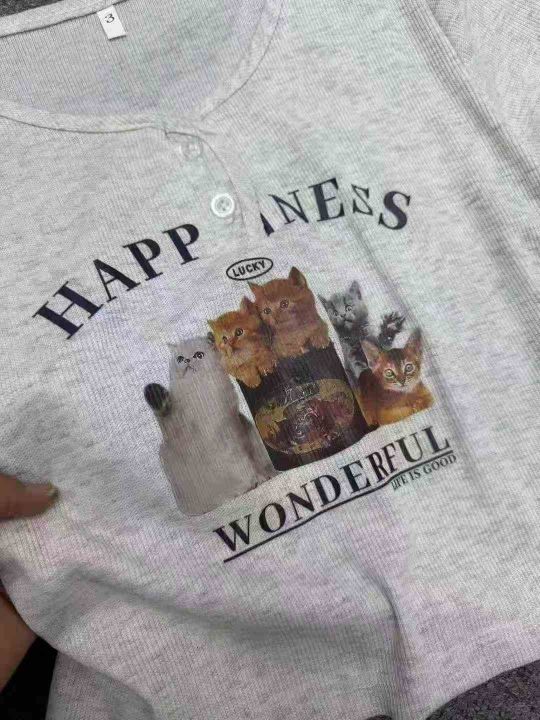 全清价6.5美式螺纹印花甜辣设计感小众修身短上衣,独...