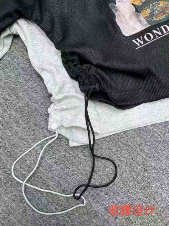 美式螺纹印花甜辣设计感小众修身短上衣,独立包装,码数1-3,数量230件,高弹,大货黑色为主,货号120#36