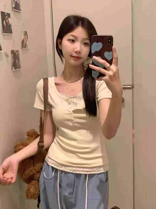 甜辣妹假两件温柔碎花短袖T恤女春夏内搭打底衫 ,独立包装,数量171件 ,1-4码,货号120#33