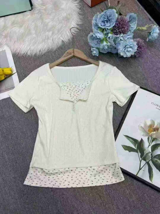 甜辣妹假两件温柔碎花短袖T恤女春夏内搭打底衫 ,独立包装,数量171件 ,1-4码,货号120#33