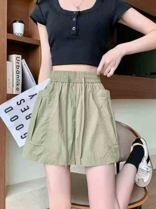 夏季大码女装高腰百搭阔腿裤复古工装口袋短裤数量:143件码数:1-4码全清:5.8...