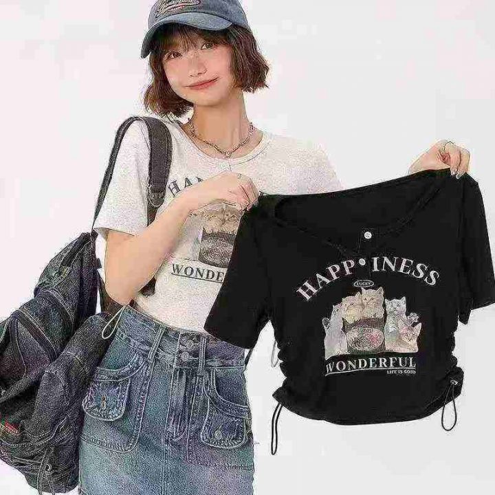 全清价6.5美式螺纹印花甜辣设计感小众修身短上衣,独...