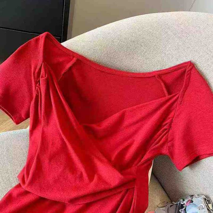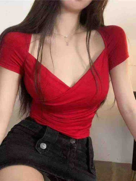 [發]纯欲辣妹性感交叉v领短袖120件左右网红新款,独立...
