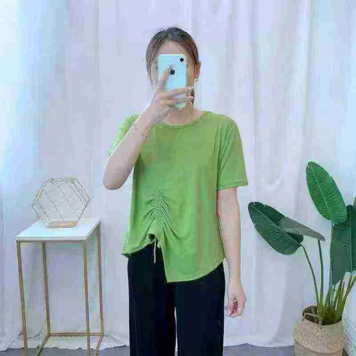 [月亮]:不规则抽绳收腰设计休闲宽松T恤