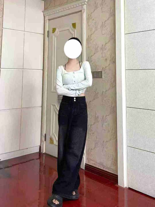 黑色高腰直筒牛仔裤女大码胖mm梨形身材宽松显瘦阔腿裤子600件,独立包装带吊牌,尺码S~4XL,货品干净整洁,全清福利价9.8元,分货➕1