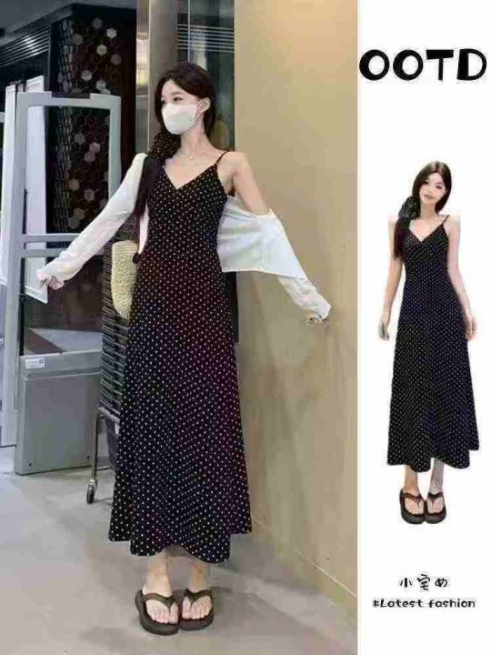 夏季新款高级感黑色波点连衣裙女宽松显瘦无袖气质法式长裙,整款单色,M-L.XL码,262件,裙长116厘米,独立包装,货品干净,7.8清,分货加1