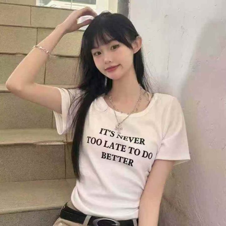 全清价6.5精梳螺纹正肩短袖T恤女甜辣风修身短款辣妹上衣,独立包装,码数2-...
