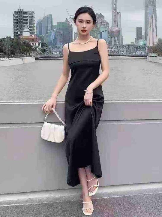 黑色吊带裙子质感高级感气质连衣裙女夏天女神范黑色小礼裙,单款单色,肩带可调节,4码裙长120厘米,独立包装,1到5码,货品干净,700件左右,7.9清,分货加1