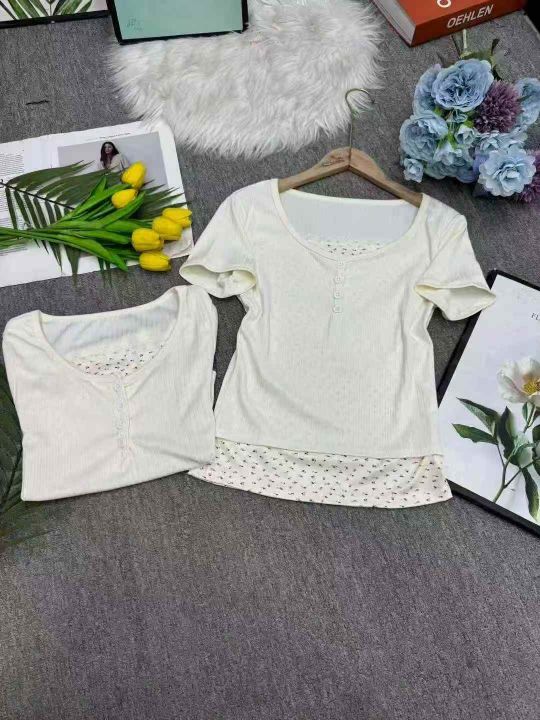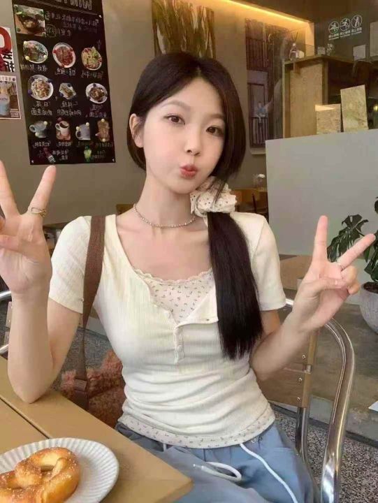 甜辣妹假两件温柔碎花短袖T恤女春夏内搭打底衫 ,独立包装,数量171件 ,1-4码,货号120#33