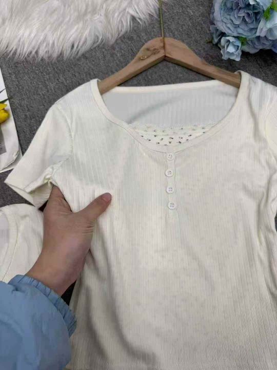 全清5.9甜辣妹假两件温柔碎花短袖T恤女春夏内搭打底衫...