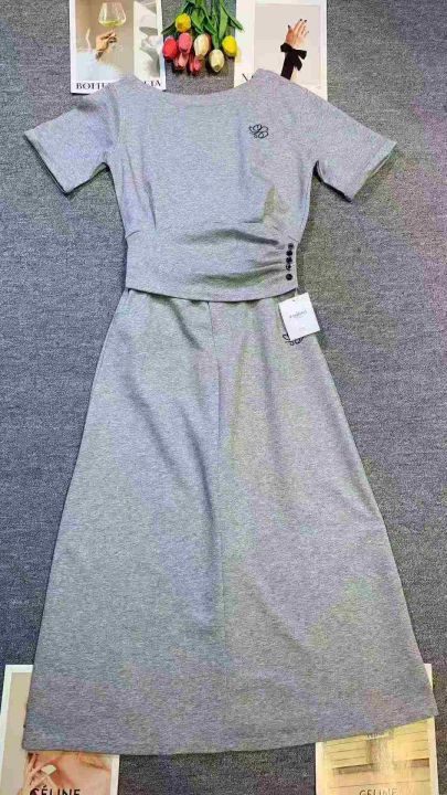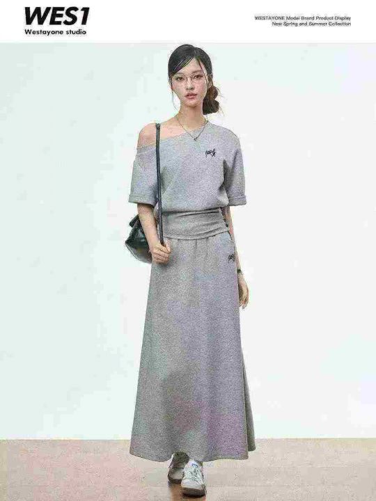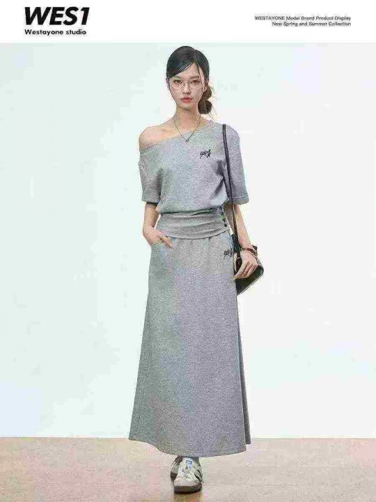 韩系斜肩收腰设计感百搭短袖套装,[爱心]80套左右,码数S-L,穿70-120斤,万佳档口货,原包装️无瑕疵,[666]实体店品质