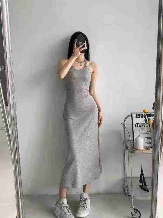 [月亮]:法式修身显瘦气质吊带挂脖连衣裙