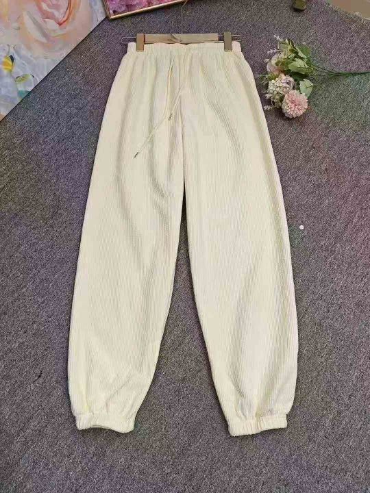 新款加绒灯芯绒休闲裤子女高腰宽松显瘦束脚外穿运动裤子,整款两色,独立包装,1-3码,650件左右,7.8清,分+1