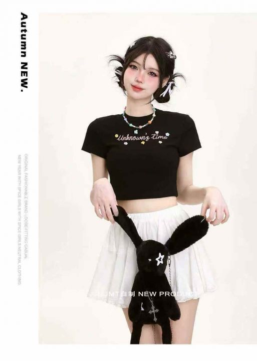 全清价6.8甜美风修身短袖t恤感辣妹露脐短款正肩小上衣...