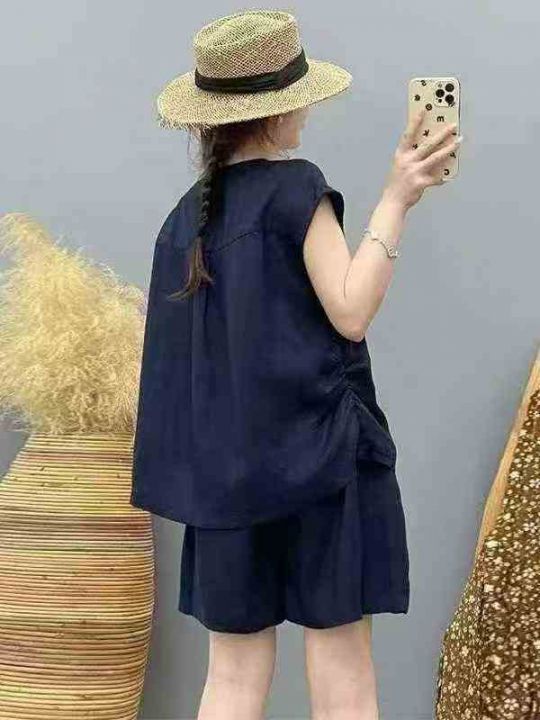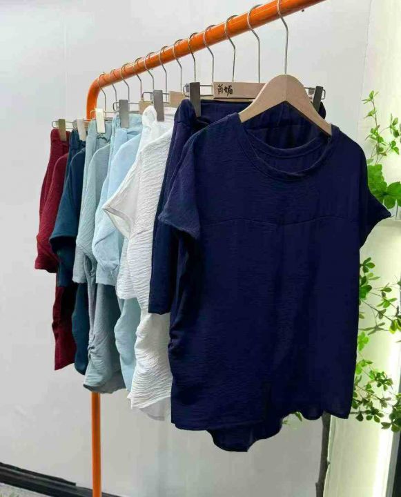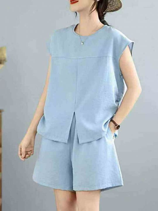 高级感短袖短裤两件套女士夏季大码欧货时尚洋气休闲穿搭套装,独立包装,亚麻面料手感柔软舒适透气质量,可入实体店,码数3-6码,数量174套,分货加1(货号119#30)