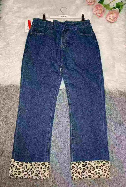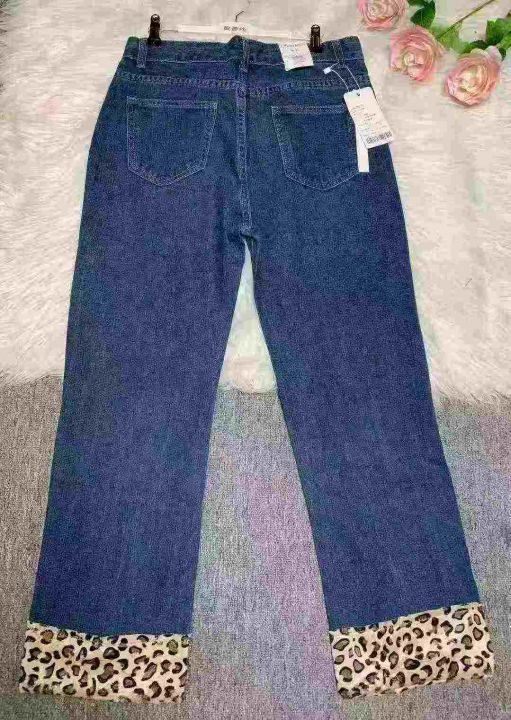 高腰牛仔直筒裤显瘦小个子加绒深蓝美式豹纹直筒烟管裤180件,独立包装带吊牌,尺码S~3XL,全清福利价9.9元
