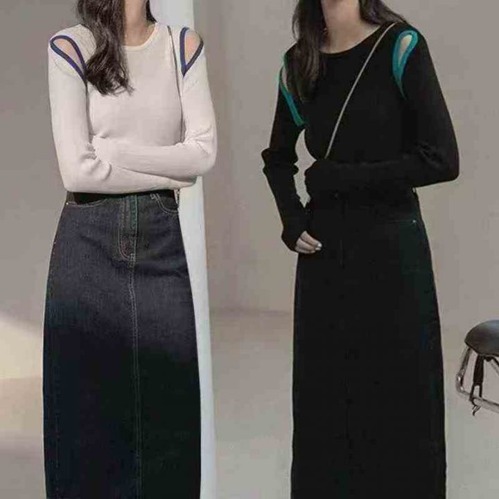 针织撞色镂空修身上衣女秋冬百搭显瘦可外穿内搭毛衣,整款2色,S-5XL码,弹力超大,独立包装,770件,大货黑色多,5.8清,分货加1