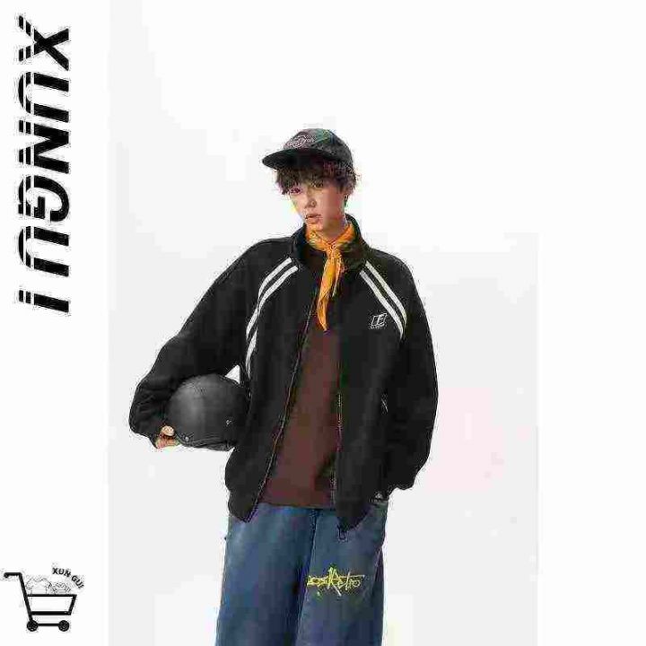 国潮立领运动卫衣外套女男秋季新款撞色拼接夹克宽松拉...