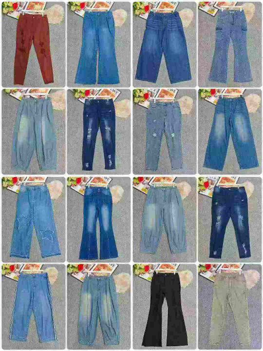 7.8清工厂回收478条外贸热卖时尚工装宽松大版女士牛仔...