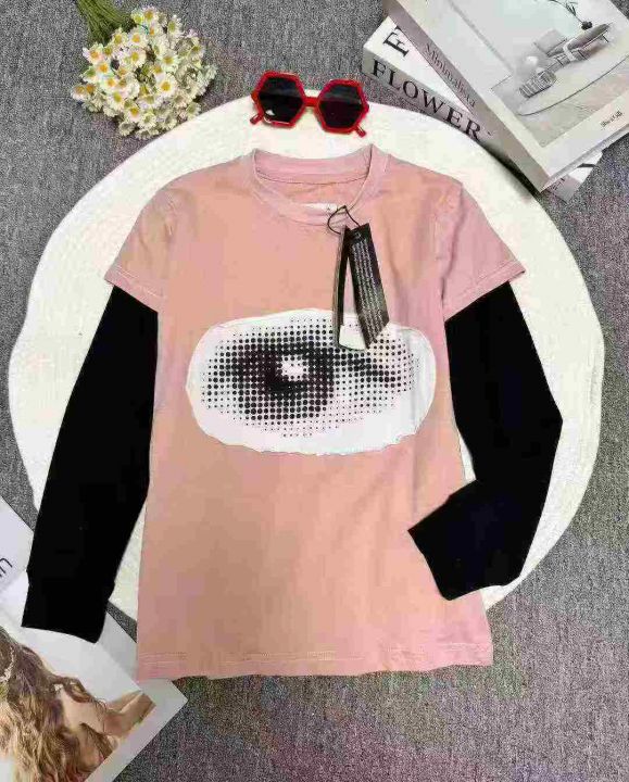 3.8元打包,卡通印花中长款休闲T恤女夏季新款薄衫宽松长袖上衣,独立包装,...