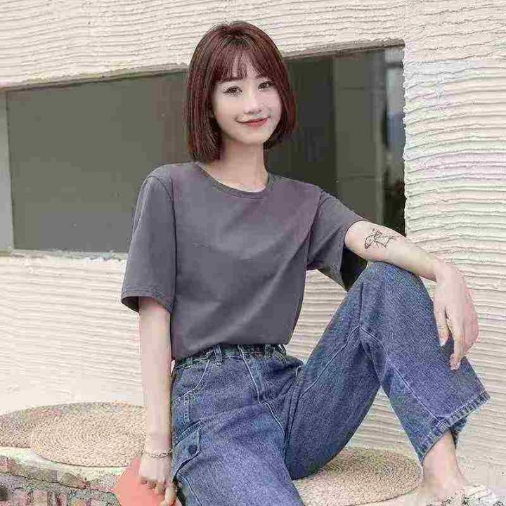 简约通勤宽松遮肉显瘦休闲百搭T恤,[爱心]100件左右,单款单色,码数S-3XL,穿70-140斤,工厂原包原吊无瑕疵