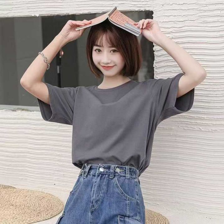 简约通勤宽松遮肉显瘦休闲百搭T恤,[爱心]100件左右,单款单色,码数S-3XL,穿70-140斤,工厂原包原吊无瑕疵