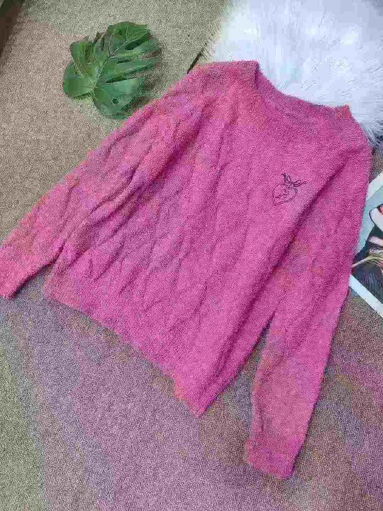 刺绣圆领套头毛衣女长袖秋冬保暖打底小颗粒绒针织衫,独立包装,均码,290件,清6.99元,分货加5毛