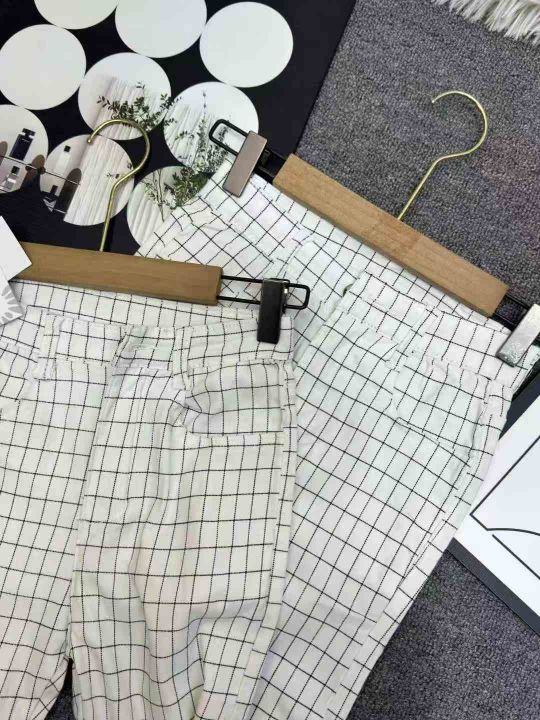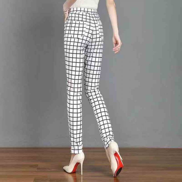 松紧腰黑白格子印花大码2025秋装新款弹力翠花显瘦百搭直筒女长裤,独立包装,高弹力长裤,码数S-XL,数量80左右,全清5.8元