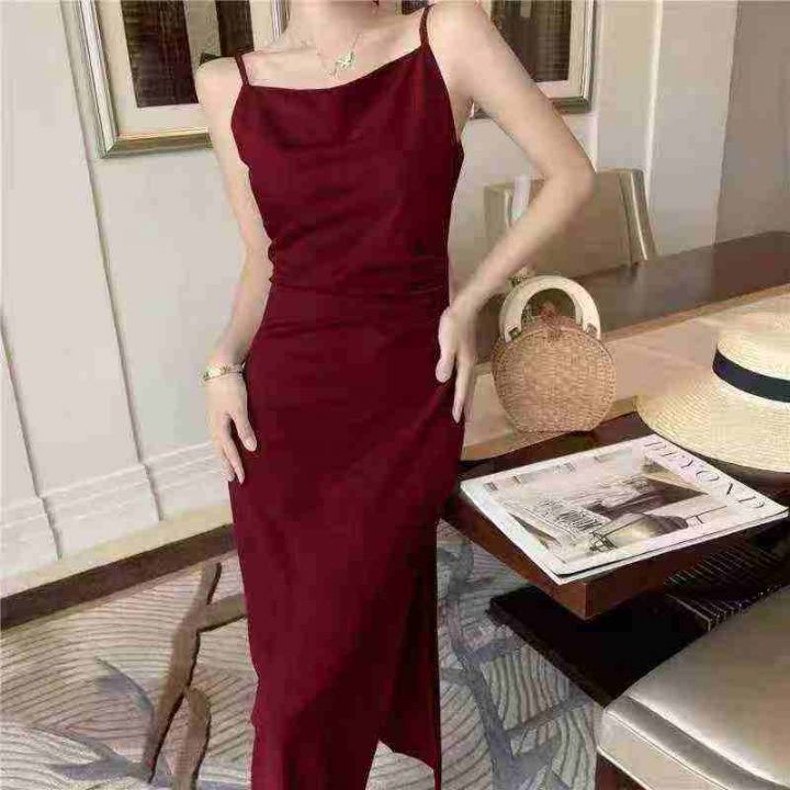 ☕️法式复古修身荡领性感吊带连衣裙女晚会宴会伴娘礼服裙子200件全清6.8元,高弹力码数S到XXL,单款单色,独立包装[庆祝][庆祝][庆祝]