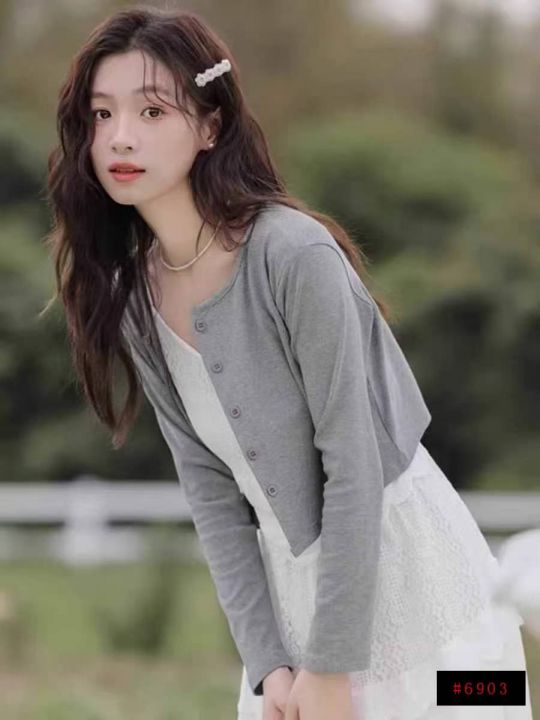 [月亮]:简约时尚短款39披肩纽扣开衫上衣