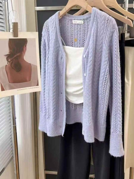 春秋新款设计感镂空钩花短款宽松针织毛衣开衫,独立包...