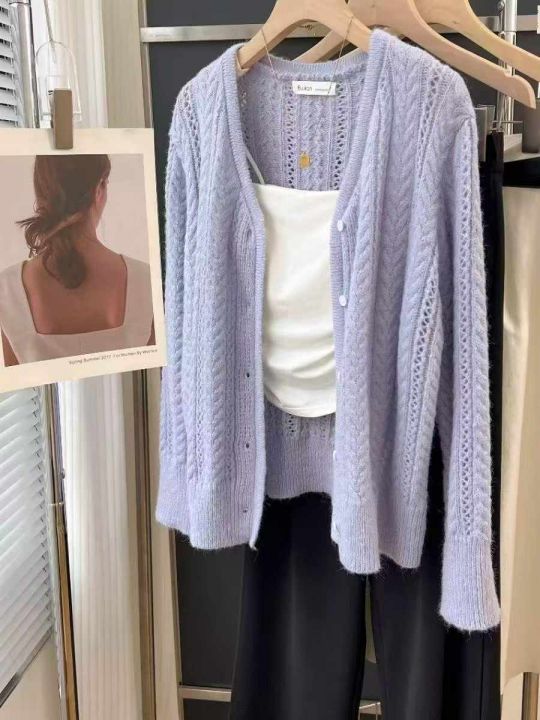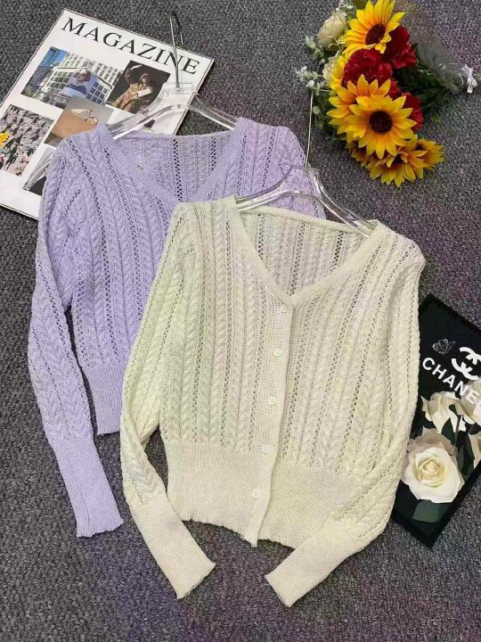 春秋新款设计感镂空钩花短款宽松针织毛衣开衫,独立包...