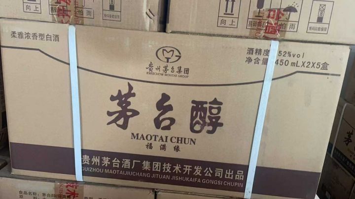 高端老酒,13年茅台醇福满园礼盒,450毫升2瓶一提,一箱5提,几十块钱一瓶,有个150箱左右